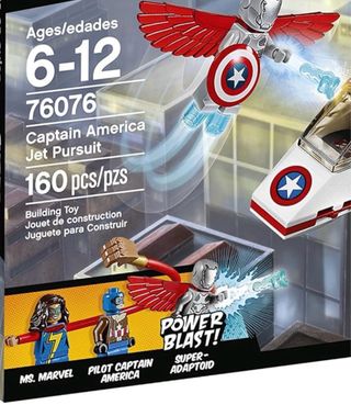Set de construcción Lego de Marvel. ORIGINAL (no imitacion). Están todas las piezas, pero no incluyo caja. - Incluye figuras de Capitán América, Black Widow y dos enemigos Outriders. - Contiene una estructura azul y negra con detalles transparentes. En amazon vale 49€ con caja.