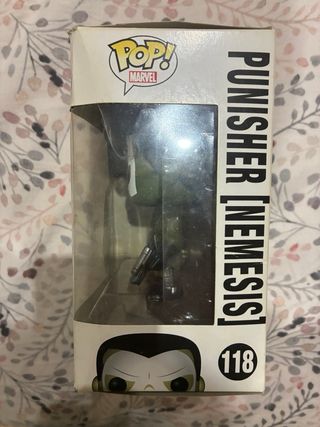 Figura coleccionable Funko Pop! del personaje Punisher Nemesis de Marvel. - Número de figura: 118. - Diseño inspirado en el personaje de Marvel. - Figura de vinilo tipo bobble-head.