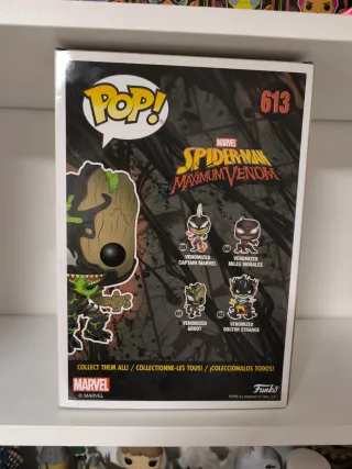 Figura Funko Pop! de Groot con el simbionte Venom, número 613 de la línea Marvel. - Diseño inspirado en Spider-Man: Maximum Venom. - Figura tipo bobble-head o cabeza oscilante.