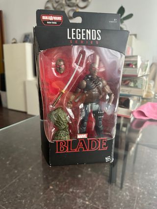 Figura de acción de Blade de la serie Marvel Legends. Incluye accesorios y la pieza para construir a Man-Thing. - Figura de Blade. - Espada. - Cabeza intercambiable. - Pieza de Man-Thing.