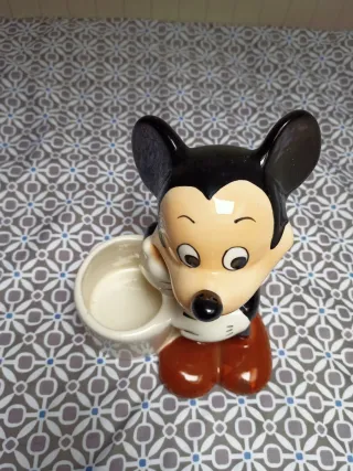 Figura de Cerámica "Vintage" de Mickey Mouse de la marca KRAMIKA de la década de 1980. La figura representa al Ratón Mickey con su diseño clásico (pantalones cortos rojos, guantes blancos y zapatos marrones grandes). Incluye un Recipiente Cilíndrico a un lado, que puede usarse como Maceta, Portalápices, Hucha o Joyero. El diseño es de Porcelana decorada con los colores característicos del personaje. - Con algunas muestras de desgaste por los años que tiene. - Medidas: 19 cm de alto x 16 cm de ancho. Profundidad: 12 cm. - IDEAL COLECCIONISTAS -