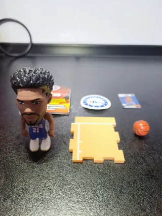 Figura coleccionable de Joel Embiid de la serie NBA Ballers. - Incluye figura de Joel Embiid. - Incluye carta de jugador. - Incluye accesorio de cancha. - Incluye balón de baloncesto. - Incluye pegatina del equipo Philadelphia 76ers. - Incluye guía del coleccionista. Acepto cambio por otro jugador.