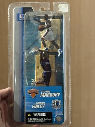 Figuras McFarlane de acción de los jugadores de la NBA Stephon Marbury y Michael Finley. Representan a los jugadores con sus respectivos equipos. - Figura de Stephon Marbury con el equipo de los New York Knicks. - Figura de Michael Finley con el equipo de los Dallas Mavericks. - Advertencia: Peligro de asfixia por piezas pequeñas. No apto para niños menores de 3 años.