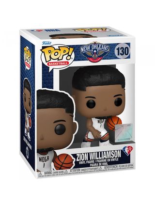 Figura Funko Pop! de Zion Williamson, número 130 de la NBA. - Representa al jugador de los New Orleans Pelicans. - Incluye un balón de baloncesto. - Licencia oficial de la NBA.
