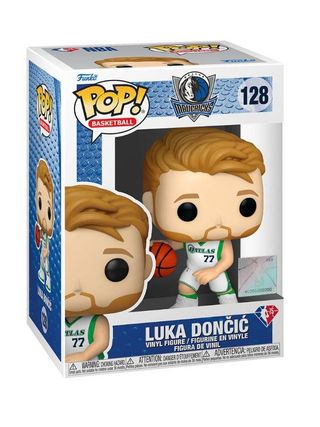 Figura Funko Pop! de Luka Doncic, número 128 de la NBA. - Representa al jugador de los Dallas Mavericks. - Edición City Edition 2021.