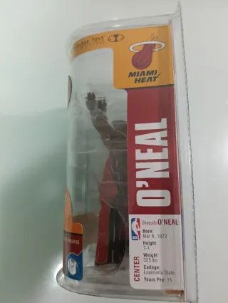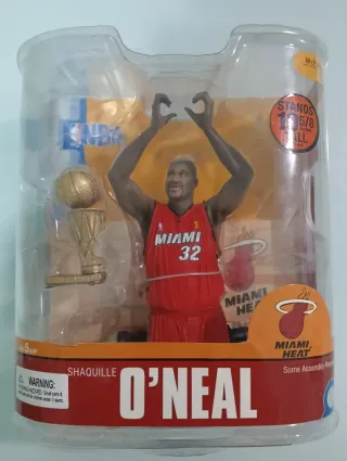 Figura de acción de Shaquille O'Neal de la serie 13 de McFarlane Toys serie Sportpicks del año 2007. La figura que nunca se ha abierto representa el momento de levantar el trofeo de campeón de la NBA con los Miami Heat. - Figura de 10 5/8 pulgadas. - Incluye trofeo.