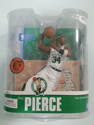 Figura de acción de Paul Pierce de los Boston Celtics, fabricada por McFarlane Toys. La figura del año 2007, serie 13 de Sports Picks de la NBA nunca se ha abierto y está en perfecto estado. - Figura de Paul Pierce. - Equipo: Boston Celtics. - Marca: McFarlane Toys. - Altura: 8 7/8 pulgadas (226 mm). - Incluye base con logo de los Boston Celtics y el personaje.