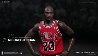 Figura coleccionable de Michael Jordan de Enterbay, Serie 1. - Escala 1/6. - Réplica de Real Masterpiece NBA Collection. - Incluye accesorios y base. - Detalle de la camiseta de los Chicago Bulls #23.