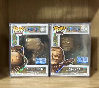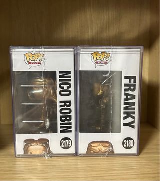 Pack de dos figuras Funko Pop! de Nico Robin, número 2179, y Franky, número 2180, de la serie One Piece. Versiones de sus estatuas de bronce ubicadas en Japón. Precintadas. Incluyen protector duro. Luffy, Nami, Usopp, Zoro, Chopper, Brook, Sanji,…