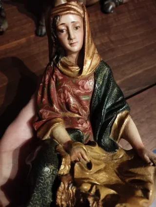 Conjunto de tres figuras de Santones de Provenza, representando escenas tradicionales.30€ los tres. - Figuras de estilo artesanal. - Detalladas vestimentas y expresiones. - Ideales para coleccionistas o decoración temática.