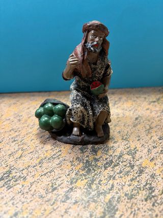 Figura artesanal para belén, representando a un hombre con cesta de sandia .Marca Atosa.Material resina.Medidas en las fotos del anuncio.Tengo mas figuras en mi perfil.Hago envios bien protegidos y a partir de 20 €(VMC). - Detalle de vestimenta tradicional. - Incluye cesta con frutas. - Ideal para completar tu pesebre.