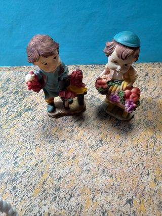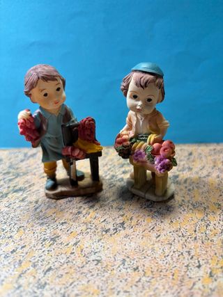 Conjunto de figuras de belén con dos niños.Material resina,medidas en la fotos del anuncio.Tengo más figuras en mi perfil. Hago envíos bien protegidos.(Leg).Hago envios a partir de 20€ Palabras claves: belén, nacimiento, pesebre, figuritas, piezas,vendedora,puestos,frutería frutero,frutas,cestos,horno,puente,río,pozo, Navidad, misterio, reyes magos, Papá Noél, árbol de Navidad, decoración, hogar, casa, fiesta, pastores, figurillas, res - Un niño con uvas. - Otro niño con cesta de frutas y flores. - Base de madera y detalles pintados a mano.