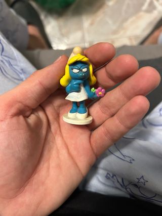 Figura de Pitufina, personaje de los Pitufos. Ideal para coleccionistas. - Figura de plástico. - Incluye un pequeño ramo de flores.