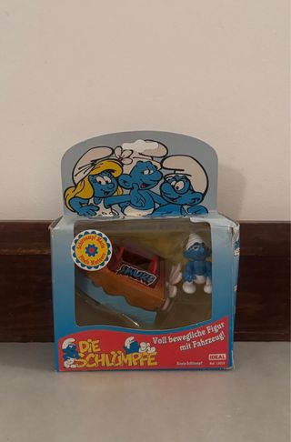 Figura de Pitufo en barca de la marca Ideal. - Pitufo móvil. - Incluye vehículo. - Referencia: 13000.