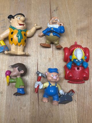 Lote de figuras de colección. - Incluye personajes de Bully. - Figuras de Pitufo, Pedro Picapiedra y enanitos.