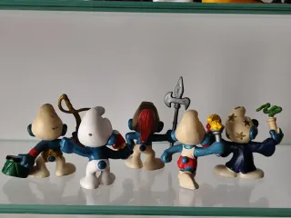 Colección de figuras de Los Pitufos, también conocidos como Les Schtroumpfs. (año 2013)Incluye varios personajes. Ver fotos estan muchas profesiones para escoger y en perfectas condiciones. PRECIO UNIDAD: 2 euros.Lote:7x10 euros. Medida:7 cm promedio.