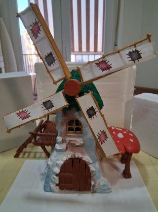 Figura decorativa de un molino con temática de pitufos. Ideal para coleccionistas o como adorno. - Diseño detallado con molino y elementos de fantasía. - Colores vivos y acabados cuidados.