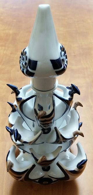 Figura decorativa de Sargadelos con un diseño llamativo. - Patrón de rayas azules y blancas. - Asa curva. - Base ancha.