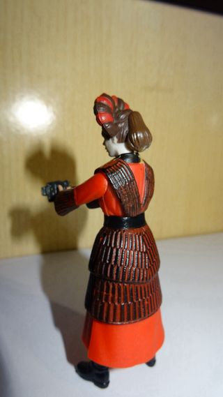 Figura coleccionable de Star Wars de aproximadamente 10 cm. -*PELO ROTO( por eso el precio) - Detalle de vestimenta en tonos rojos y marrones. - Incluye accesorio tipo arma.