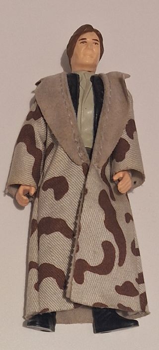 Se vende figura vintage de Star Wars. La figura es Han Solo con gabardina de camuflaje. Solo la figura y la gabardina, no tiene la pistola original. La figura y la gabardina se encuentran en buen estado.