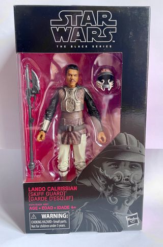 Figura de acción Lando Calrissian como guardia de skiff de Star Wars: The Black Series. ¡En perfecto estado! Incluye la figura, un arma y un casco. - Figura articulada. - Alta calidad. - Ideal para coleccionistas.