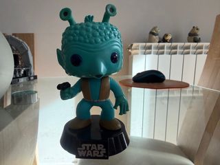 SIN CAJA Figura coleccionable de Funko Pop de Star Wars. El personaje es de color verde azulado con detalles en marrón. - Incluye base con el logo de Star Wars.