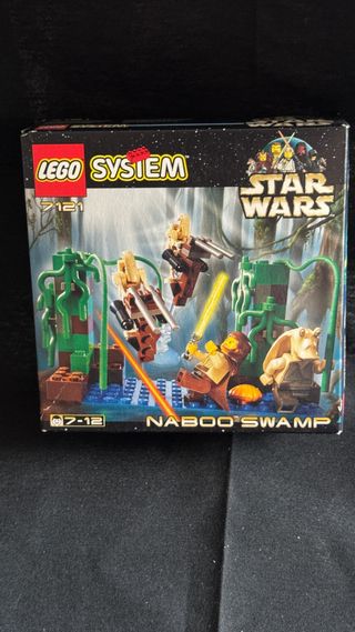 Set de Lego Star Wars 7121 Naboo Swamp. La caja está sellada, sin abrir. - Incluye figuras de personajes y elementos del escenario. - Basado en la película Star Wars: Episodio I. - Recomendado para edades de 7 a 12 años.