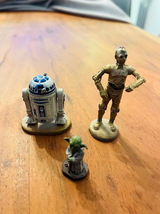 Set de figuras de Star Wars, en buen estado. Son 12 figuras de colección, detalladas y pintadas a mano. Ideales para coleccionistas o amantes de la saga. - Incluye personajes icónicos como Darth Vader, Chewbacca, Han Solo, R2-D2 y otros. - Figuras de plomo, resistentes y duraderas. - Perfecto estado de conservación.