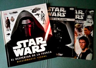 Lote formado por: - Figura de plomo de Darth Vader de 7 cm. junto con el fascículo. Editados por Planeta DeAgostini en 2005. En su protección de plástico original para protegerla. - Diccionario Visual de "El Despertar de la Fuerza". Libro en tapa dura editado por Penguin Random House en 2015 con 80 páginas y formato 30 x 26 cm. Todo como nuevo, sin ninguna señal de uso. - Libro de tapa dura. - Incluye figura de Darth Vader de plomo.