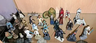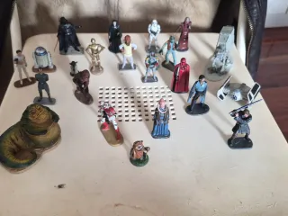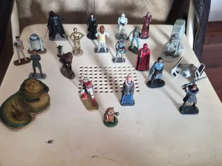 Colección de figuras y naves del universo Star Wars. - Incluye personajes icónicos como Darth Vader, R2-D2 y Jabba el Hutt. - Variedad de naves espaciales como el AT-AT y el TIE Fighter. - Figuras detalladas de varios personajes de la saga.22 figuras de plomo pintadas a mano año 2005