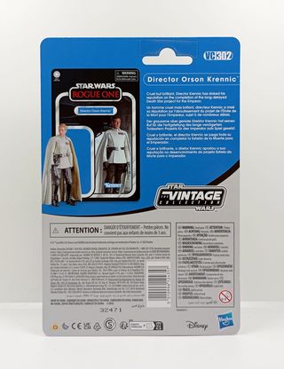 Figura de acción del Director Orson Krennic de la colección Vintage de Star Wars: Rogue One. - Empaque estilo retro. - Incluye accesorios. - Licencia oficial de Star Wars.