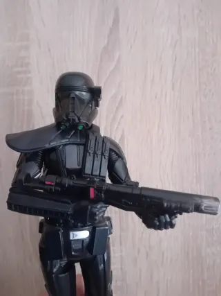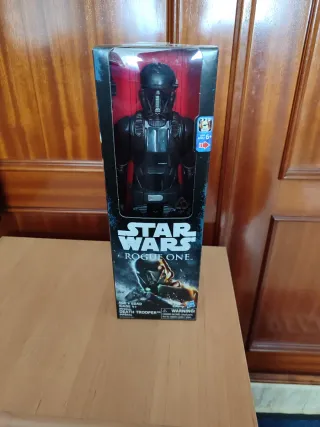Figura de acción de un soldado de Star Wars: Rogue One con armadura negra. Figura articulada con arma. - Diseño detallado de la armadura. - Incluye arma. Figura original. Precio negociable.