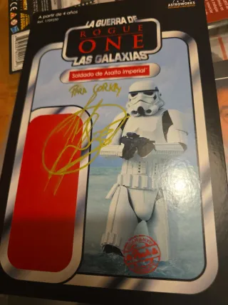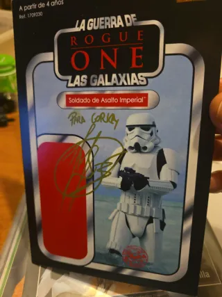 Figura de acción Soldado de Asalto Imperial de Star Wars: Rogue One, con autógrafo. - Edición La Guerra de Rogue One: Las Galaxias. - Autógrafo de David Santana. - Incluye figura de soldado imperial. Dedicado a Gorka.