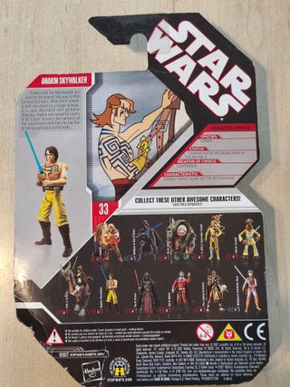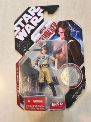 Figura Star Wars 30th Anniversary 3,75” Anakin Skywalker, Hasbro 2007 , el cartón tiene alguna arruga en los bordes (ver fotos), expanded universe. Figura de acción de Anakin Skywalker de Star Wars, parte de la colección del 30 aniversario. - Escala de 3,75 pulgadas. - Incluye sable de luz. - Edición Expanded Universe.