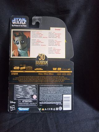 STAR WARS THE BLACK SERIES – GREEDO ACTION FIGURE Este conjunto de 3 figuras de acción, que consta de Luke Skywalker, Han Solo y Greedo como se ve en Star Wars Episodio IV: Una nueva esperanza, es un conjunto de edición muy limitada creado para el 50 aniversario de Star Wars y vendido exclusivamente en Hasbro Fan Pulse. La colección Star Wars Black Series presenta un diseño y detalles inspirados en las figuras originales de Star Wars de los años 70. Medida aproximada.: 15cm. Accesorios incluidos.