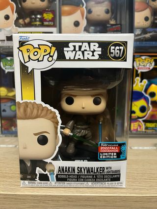 Figura Funko Pop de Anakin Skywalker con sables de luz, número 567. - Edición exclusiva de la Convención de Otoño 2022. - Parte de la línea Star Wars. - Bobble-head. - Figura limitada.
