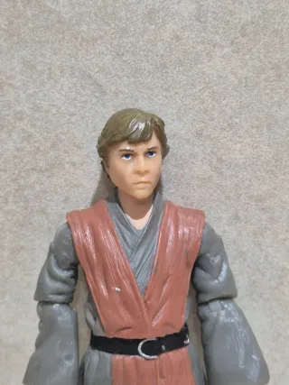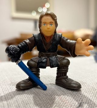 Figura coleccionable de Star Wars, fabricada por Hasbro en 2004. - Personaje de Anakin Skywalker. - Incluye sable de luz azul. • Figura original Hasbro • Licencia Star Wars • Año 2004 (se ve grabado en la suela) • Tamaño aprox. 6–7 cm