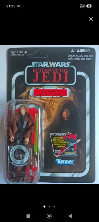 Figura de acción de Luke Skywalker, el Caballero Jedi, de la colección Return of the Jedi de Star Wars. -Figura original sin abrir nueva de hasbro kenner unos 9 cm aprox - Figura de Luke Skywalker. - Colección Return of the Jedi. - Incluye sable de luz verde.