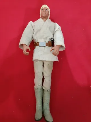 Figura de acción clásica de Star Wars, representando a Luke Skywalker. - Traje blanco con cinturón. - Pantalones beige. - Botas altas.