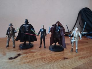 Muñecos / juguetes / Figuras pequeñas de acción, marca Hasbro, de Star Wars: -Darth Vader del Episodio III, 2004. -Anakin Skywalker también del Episodio III, 2004. -Rey de la colección del Episodio VII. -Luke Skywalker de 2013. Figura de Indiana Jones: -De la película de la Calavera de Cristal sin pistola. 5.5 € LA UNIDAD-