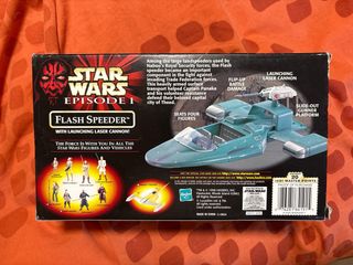 Vehículo de Star Wars Episodio I, el Flash Speeder. - Incluye figura de Qui-Gon Jinn. - Incluye figura de Padmé Amidala. - Incluye figura de Anakin Skywalker. - Incluye figura de Capitán Panaka. - Cañón láser lanzador.
