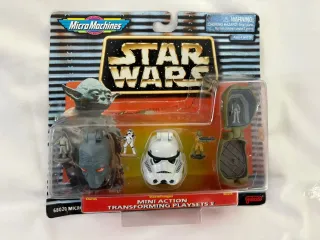 Colección de playsets transformables de Star Wars de Micro Machines. - Incluye figuras de Duros, Stormtrooper y Bossk. - Presenta cabezas transformables de Duros y Stormtrooper. - Personajes icónicos de Star Wars.