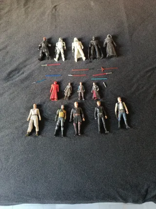 Lote de figuras de Star Wars. 14 figuras de muchas colecciones y escalas. - Incluye personajes icónicos de la saga. - Figuras detalladas para coleccionistas.