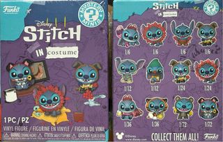 Dos cajas de Funko Disney Stitch In Costume Mystery Minis. Cada caja contiene una figura. - Figuras coleccionables de Stitch. - Edición In Costume. - Mystery Minis de Funko.