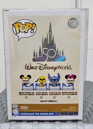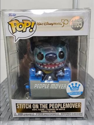 Figura Funko Pop de Stitch sobre el People Mover, número 1165, conmemorativo del 50 aniversario de Walt Disney World. - Figura exclusiva de Funko. - Diseño de Stitch en el People Mover. - Parte de la colección de Walt Disney World 50th Anniversary.