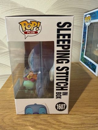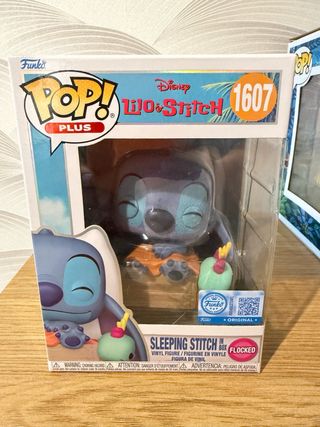 Figura Funko Pop! de Stitch durmiendo, edición especial Flocked. - Número de modelo: 1607. - Personaje: Stitch de Disney. - Colección: Lilo & Stitch. - Tipo: Flocked (aterciopelado).