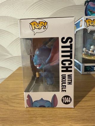 Figura Funko Pop! de Stitch tocando el ukelele, número 1044 de la línea Disney. - Personaje: Stitch. - Serie: Lilo & Stitch. - Número de figura: 1044. - Incluye ukelele.