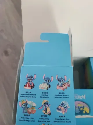 Figura coleccionable Stitch de Miniso de la colección Trip. ¡Es una monada! - Figura de Stitch en moto. - Diseño adorable y colorido. - Viene en caja ciega (blind box). - Ideal para coleccionistas.