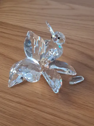 Preciosa figura de cristal de Swarovski que representa una abeja sobre una flor. Ideal para coleccionistas o como detalle decorativo. - Diseño detallado de abeja y flor. - Material: Cristal tallado. - Pieza de colección. - Tiene 1 ala de la Abeja despegada
