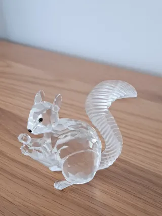 Figura decorativa de una ardilla realizada en cristal tallado. - Diseño detallado y brillante. - Ideal para coleccionistas o como adorno.